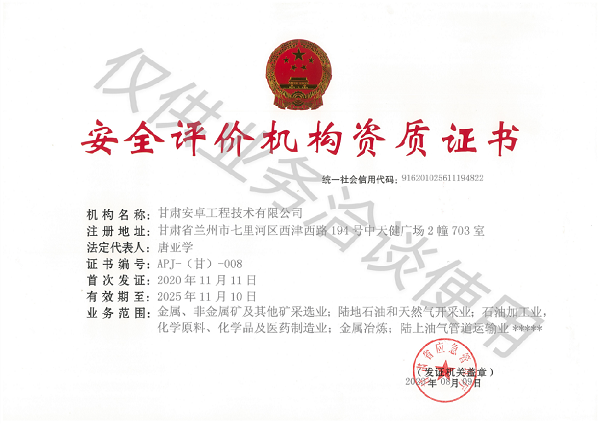 安全評價機構資質證書