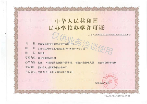 甘肅安卓職業技能培訓學校有限公司民辦學校辦學許可證