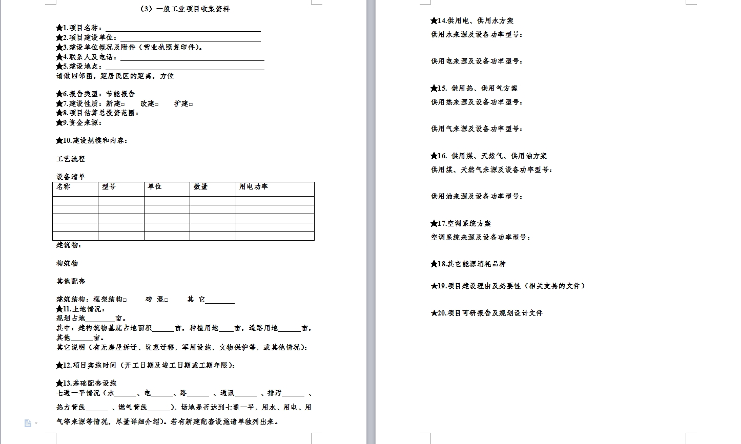 節能評估所需資料清單