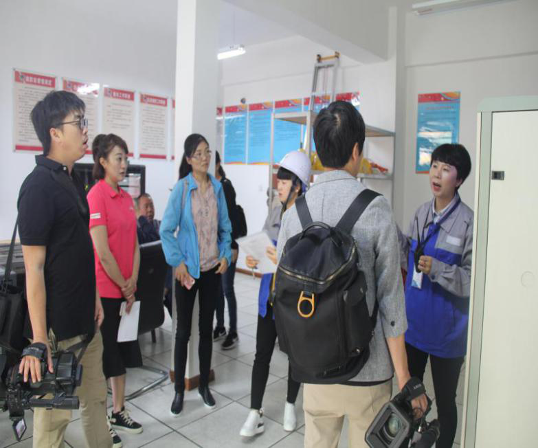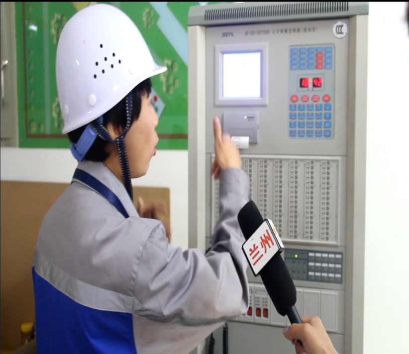 蘭州電視臺采訪人員認真聆聽消防火災控制器主機